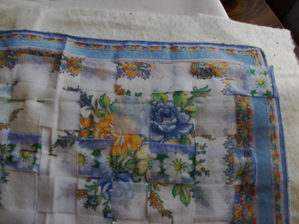 Recently I was lucky to come across a lot of vintage handkerchiefs and I had been looking at them trying to decide what to do with them. Well, last week I had a dream, woke up and wrote it down, and this morning I finally got around to trying it out!